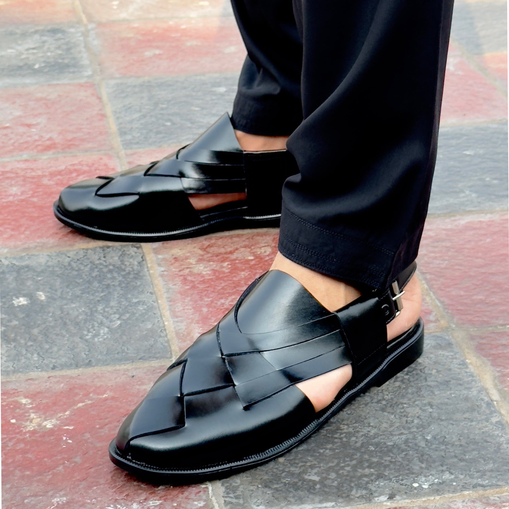 BLACK STRAP LEATHER PESHAWRI SANDAL